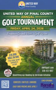 The United Way of Pinal County is hosting its annual golf tournament on April 24, 2026. This tournament raises important funds for the Pinal County Reading by 3rd Grade Initiative, in partnership with Dolly Parton’s Imagination Library. They have 3,300 children across all zip codes in Pinal County receiving a book in the mail monthly to help develop critical literacy skills and a love for books to prepare for kindergarten and beyond. (40,000 books mailed to Pinal County annually) The 2025 test scores reflect that only 27% of Pinal County 3rd graders are reading, and many cities within Pinal County are around 15% reading. This is a critical benchmark, and this event raises funds to support our children and ensure they are prepared for kindergarten and reading.